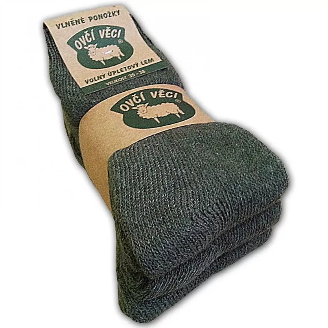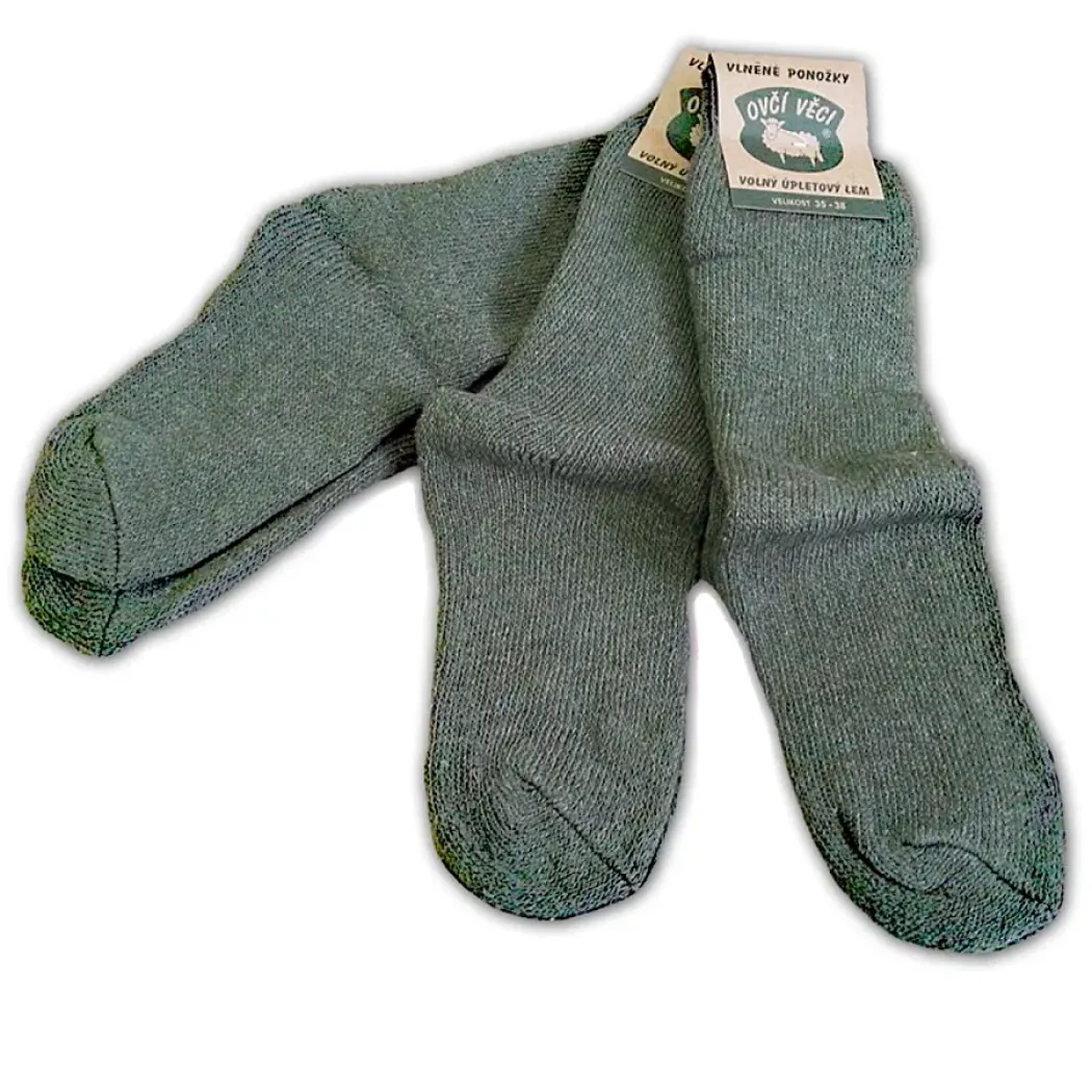 Teplé ponožky z kvalitní ovčí vlny v zelené barvě v sadě po třech párech do lesa, na turistiku i rybaření. Doporučovány jsou i na spaní a díky volnému úpletovému lemu jsou vhodné i pro diabetiky.