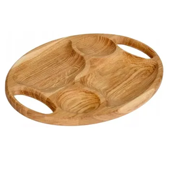 Velké dubové prkénko oválné pro servírování občerstvení. Ideální pro podávání masa, uzenin, sýrů a dipů doma nebo při grilování na zahradě. Rukojeti pro snadné přenášení prkna.