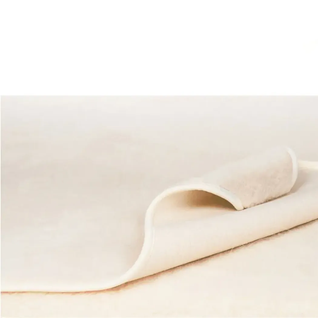Prostěradlo z ovčí vlny Merino. Tyto podložky má profylakticko-léčebné účinky. Nedráždí pokožku, jemně masíruje nervová zakončení na těle. Snižuje také napětí a bolest, odstraňuje kladné ionty, škodlivé pro organismus, které jsou příčinou únavy a bolestí hlavy. Odvádí vlhkost a zachovává tzv. suché teplo.