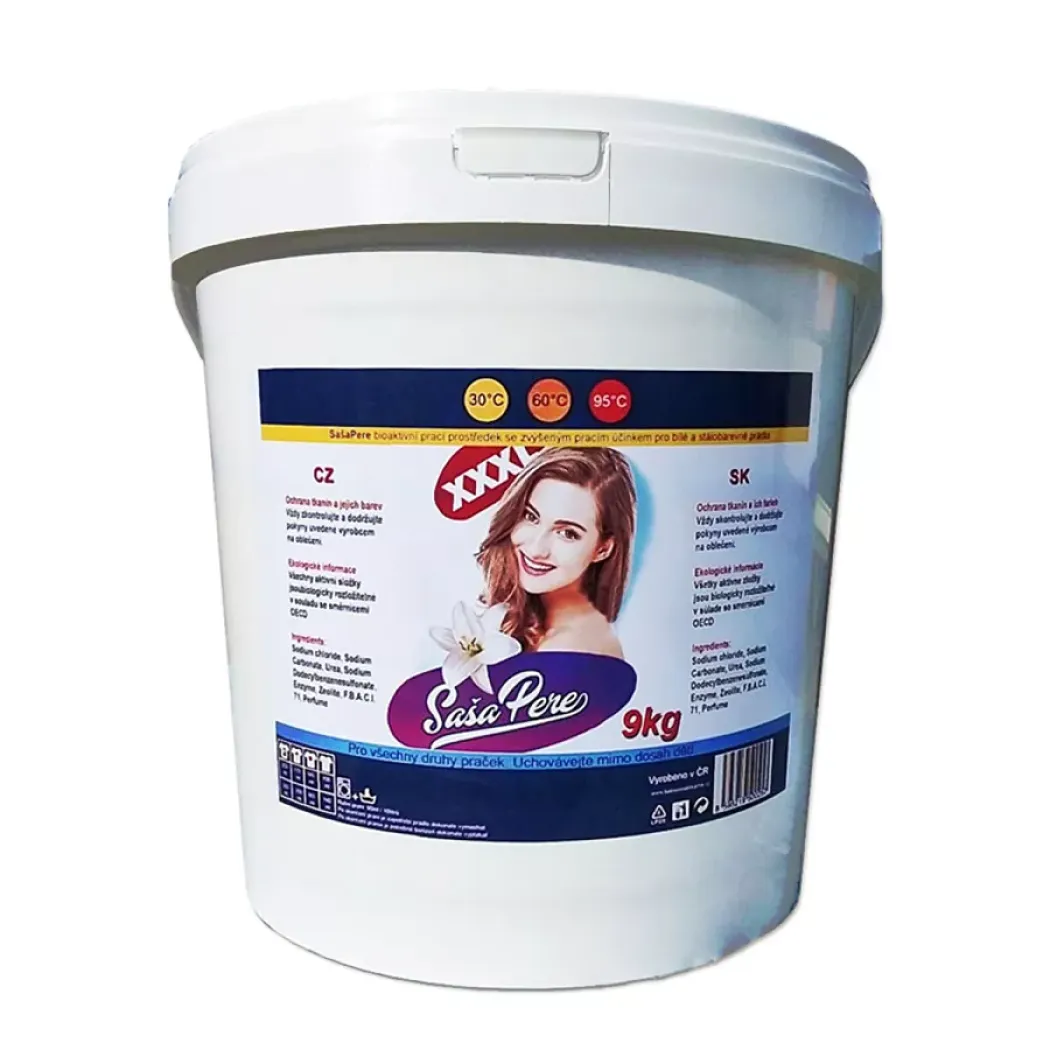 Univerzální profi prací prášek SašaPere vhodný na praní, předpírání a namáčení pro všechny druhy praček na bílé i barevné prádlo.