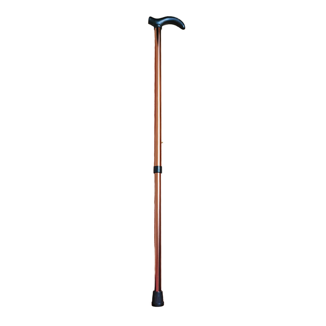 Oblíbená vycházková hůl s rukojetí Derby. Vycházková hůl je s velkým rozsahem nastavení délky a s příjemnou plastovou rukojetí. Hůl je pevná a efektní s jemným zdobením v horní a střední části.